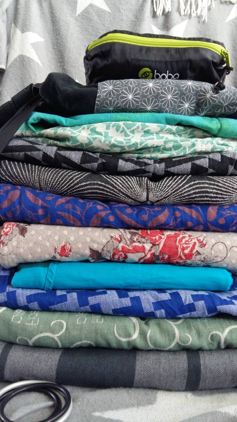 Zoals je kunt zien is er heel veel mogelijk. Een draagdoek is niet zomaar een doek. En als je het eenmaal een beetje in de gaten hebt, werkt het zoeken naar jouw ideale draagdoek enorm verslavend en heb je voor je het weet, net als ik, een enorme ‘stash’. Een grote verzameling doeken.